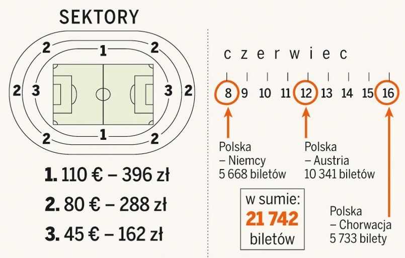 Mecze polskich piłkarzy na mistrzostwach Europy w Austrii i Szwajcarii według oceny PZPN chce zobaczyć około 600 tys. kibiców. Zdecydowana większość obejdzie się smakiem. Na stadiony wejdzie zaledwie około 7–8 tysięcy osób, które wylosują bilety, choć dla Polski przeznaczono ich ponad 21 tysięcy.