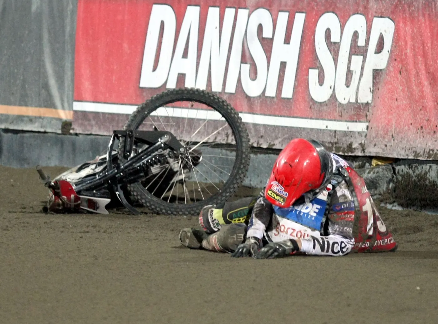 Po przebiciu opony przedniego koła, przy wyjściu z wirażu, stracił panowanie nad motocyklem. Uderzył w bandę w miejscu, gdzie kończyła się nadmuchiwana osłona, a zaczynała twarda obudowa toru.