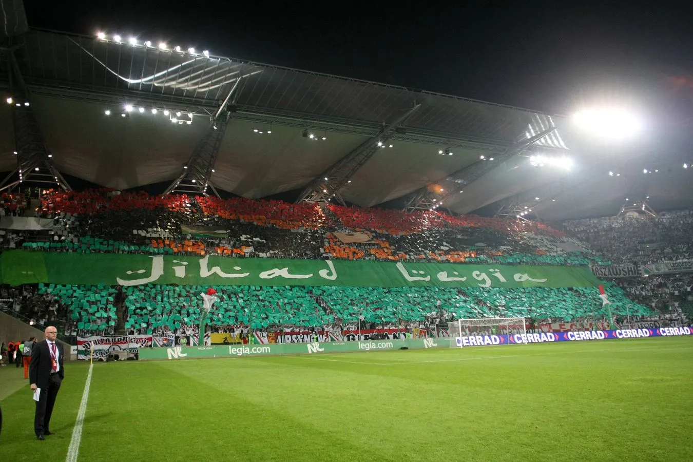 Czwartkowy mecz rozgrywany był w Warszawie. Piłkarze Legii pokonali Hapoel 3:2. Przed spotkaniem na trybunie zajmowanej przez najbardziej zagorzałych fanów Legii pojawił się wielki transparent "Jihad Legia". Napis wykonano czcionką stylizowaną na alfabet arabski. Kibiców nie powstrzymały apele spikera o powstrzymanie się od zachowań o charakterze rasistowskim.