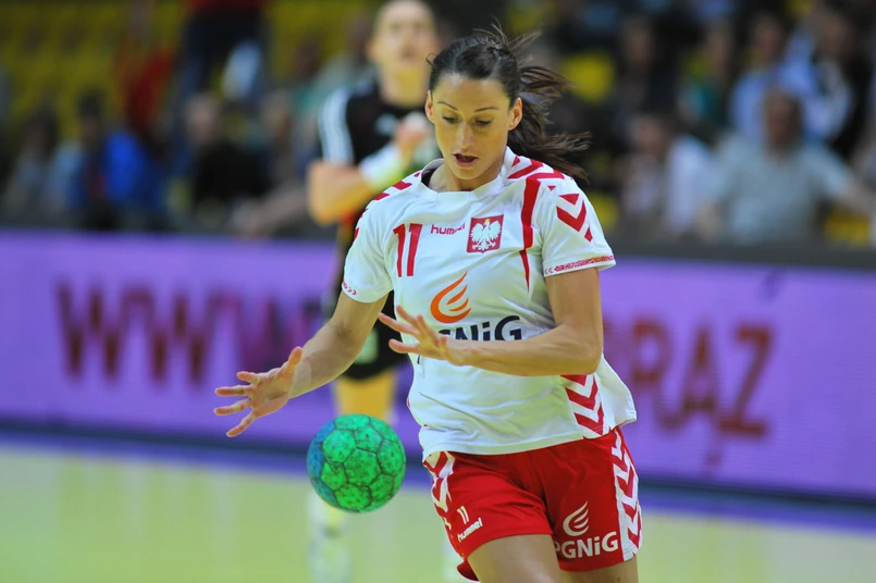 Poczynaniami koleżanek umiejętnie kierowała jedna z najbardziej doświadczonych w polskim zespole, na co dzień zawodniczka HC Lipsk, Karolina Kudłacz. Większość jej ataków bądź kończyło się golem, bądź podyktowaniem karnego. Do przerwy biało-czerwonym udawało się utrzymać czterobramkowe prowadzenie. Kilkoma udanymi interwencjami popisała się Weronika Gawlik.