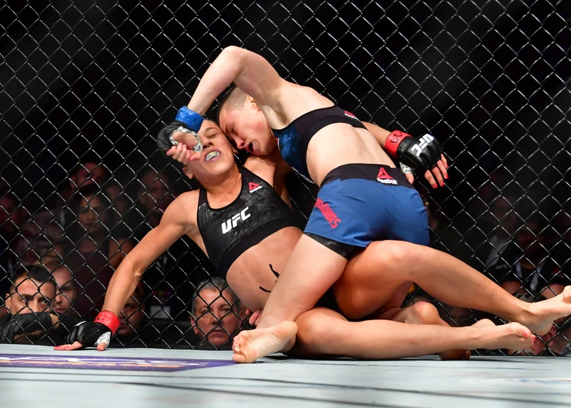 Wcześniej Polki nie pokonał nikt, a próbowało 13 - z Claudią Gadelhą walczyła dwukrotnie - zawodniczek. Była na samym szczycie, miała status niekwestionowanej gwiazdy. Pięciokrotnie udanie broniła pasa wagi słomkowej, który wywalczyła 14 marca 2015, pokonując w Dallas Carlę Esparzę.