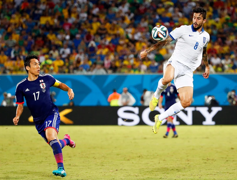 Żółte kartki: Makoto Hasebe (Jap), Kostas Katsouranis (Gre), Georgios Samaras (Gre), Vassilis Torosidis (Gre)