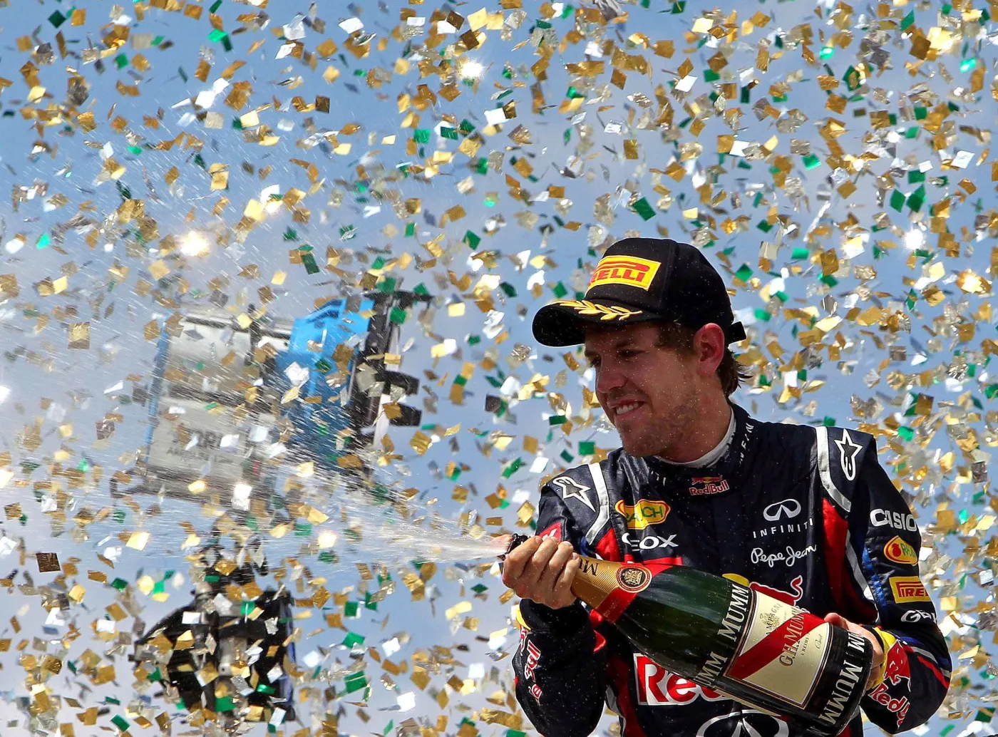 Pechowy okazał się wyścig o Grand Prix Abu Zabi dla Sebastiana Vettela z Red Bull-Renault, którego z rywalizacji wyeliminowało uszkodzone tuż po starcie prawe tylne koło. Niemiec już wcześniej zapewnił sobie tytuł mistrza świata, podobnie jak jego zespół.