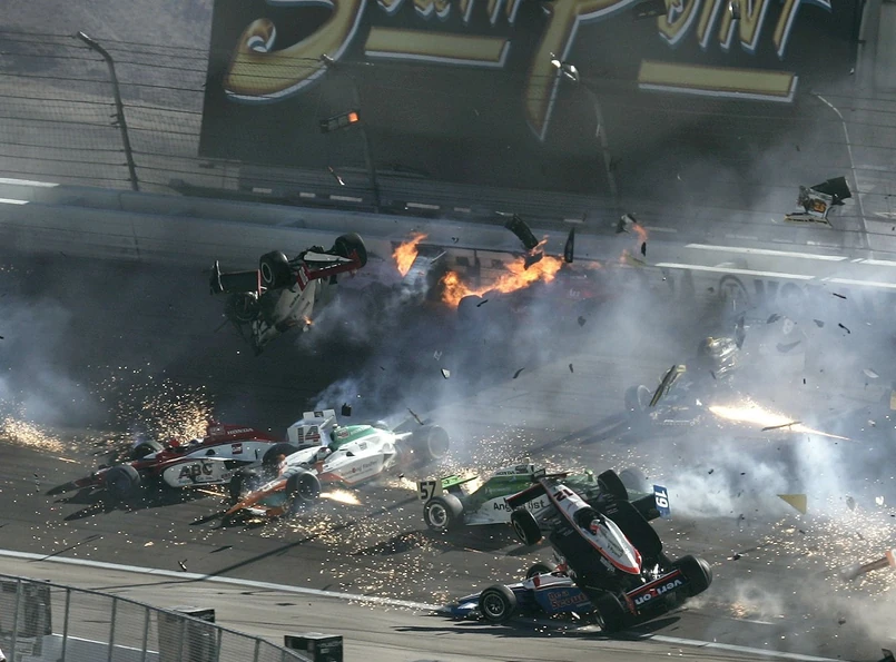 W ostatnim wyścigu sezonu formuły IndyCar doszło do tragicznego wypadku z udziałem 15 samochodów. W trakcie kolizji auto Dana Wheldona, byłego mistrza świata uniosło się w powietrze i uderzyło w barierę ochronną. Samochód Wheldona stanął w płomieniach. Kierowca niestety nie przeżył. Pozostali uczestnicy wypadku nie odnieśli poważniejszych obrażeń.