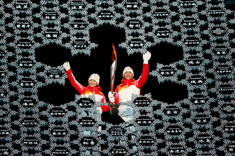 Ową sztafetę zakończyli zaś urodzeni w 2001 roku Yilamujiang i Zhao. Oboje nie mają jak na razie na koncie znaczących sukcesów. Razem umieścili oni płonącą pochodnię na konstrukcji przypominającej ogromny płatek śniegu, który wzniósł się następnie w górę ponad stadion. Będzie tam płonąć aż do ceremonii zamknięcia igrzysk, która odbędzie się 20 lutego.