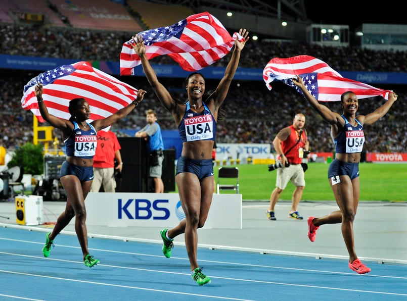 W zespole USA, który uzyskał w finale najlepszy czas w tym roku na świecie - 41,56, wprowadzono dwie zmiany w porównaniu z eliminacjami. Shalondę Solomon i Alexandrię Anderson zastąpiły Allyson Felix oraz złota medalistka z Daegu na 100 m Carmelita Jeter, która pobiegła na ostatniej zmianie. W składzie pozostały natomiast Bianca Knight i Marshevet Myers.