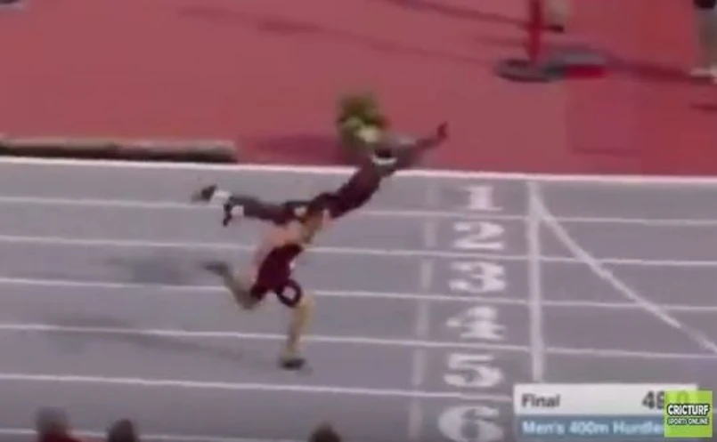 Bieg na 400 metrów przez płotki podczas mitingu w Arkansas miał niecodzienny finał. Infinite Tucker wskoczył na metę. Dosłownie! Takiego finiszu w historii lekkoatletyki jeszcze nie było.