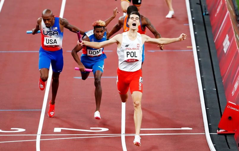 Polska sztafeta w składzie: Karol Zalewski, Natalia Kaczmarek, Justyna Święty-Ersetic i Kajetan Duszyński wywalczyła pierwsze złoto dla Polski na igrzyskach w Tokio. Biało-czerwoni w nowej dyscyplinie olimpijskiej sięgnęli po tytuł poprawiając w finale rekord Europy. Drugie miejsce zajęli reprezentanci Dominikany, a trzecie Amerykanie, których na ostatniej zmianie zdystansował Duszyński.