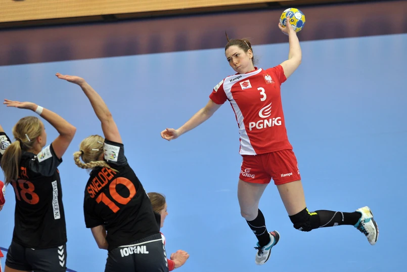 Początek był nerwowy z obu stron. Holenderki, które w pierwszym pojedynku przegrały dość nieoczekiwanie z Niemkami 27:30, też nie mogły sobie pozwolić na kolejną porażkę i również popełniały błędy. W szóstej minucie po udanej kontrze zakończonej golem Kingi Achruk po raz pierwszy i ostatni w tym meczu na tablicy wyników pojawił się remis (2:2).