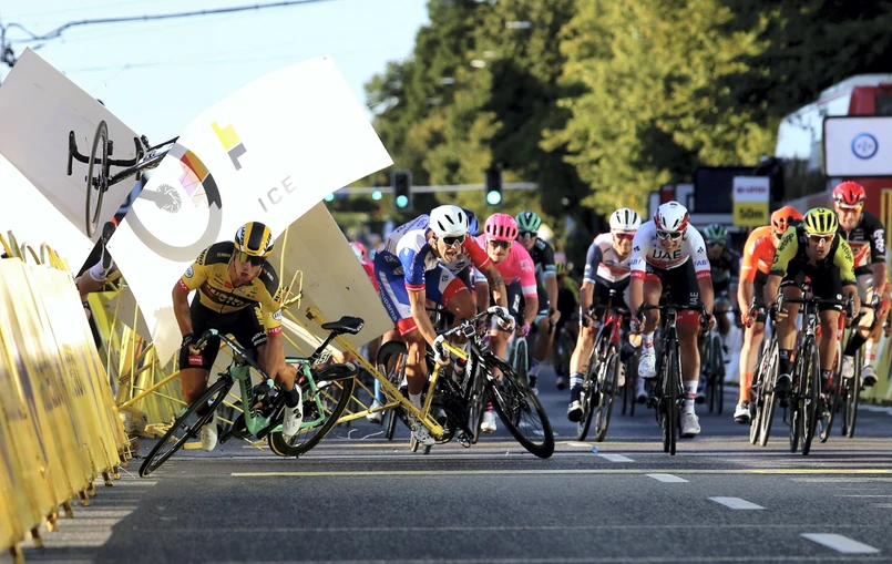 Tuż przed metą w Katowicach Holender Jakobsen, spychany przez swojego rodaka Groenewegena na prawą stronę jezdni, uderzył z ogromnym impetem w barierki i wyłamał je, zderzając się z sędzią obsługującym fotokomórkę.