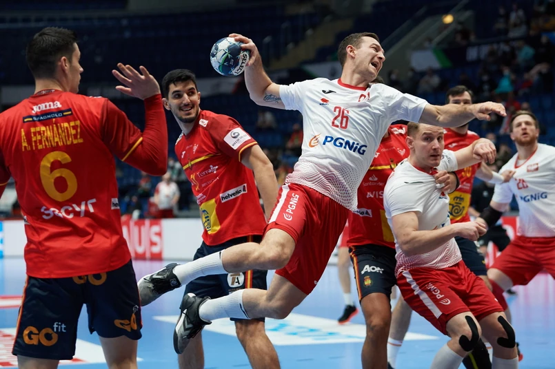 Hiszpanie rozszyfrowali taktykę przeciwników, często przecinali podania, wyłuskiwali piłkę, a potem przeprowadzali zabójcze kontry. W pierwszej połowie ich przewaga momentami wzrastała do czterech trafień. W 11. minucie wygrywali 7:3, ale wtedy to biało-czerwoni doszli do głosu. Kilka udanych interwencji Mateusza Zembrzyckiego, celne rzuty z drugiej linii Damiana Przytuły, który godnie zastępował Sićkę, a także Michała Daszka i w ciągu kilku minut ponownie był remis 8:8.