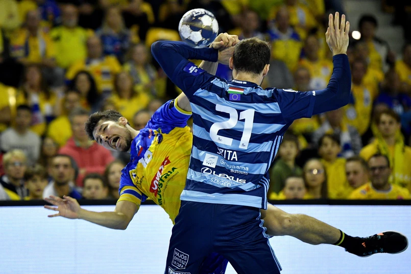 Bezradny do tej pory węgierski zespół wykorzystał fakt, że wysokie prowadzenie uśpiło drużynę z Kielc. Po trafieniu Miguela Martinsa Szeged zmniejszył straty do siedmiu bramek (22. min – 10:17), a kiedy Wolffa pokonał Matej Gaber - do pięciu (13:18, 26. min). Ostatnie minuty pierwszej połowy, to jednak ponownie popis polskiej ekipy. Wolff trzymał wysoki poziom, broniąc m.in. drugiego karnego, a po siódmej już bramce Moryty gospodarze na przerwę schodzili prowadząc 22:14.