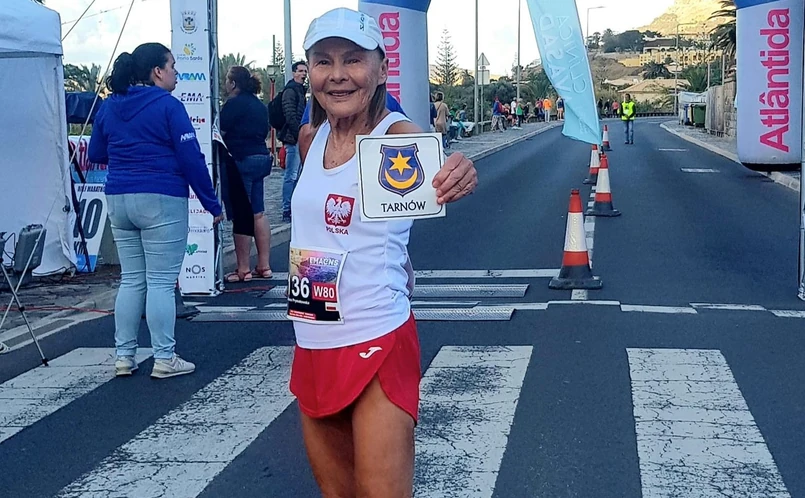 "Rywalizowałam w półmaratonie i byłam jedyną Polką na tym dystansie. Rocznik 1943 to ewenement kobiecy. W kategorii 80 wywalczyłam złoty medal" - pisze biegaczka na swoim profilu na Facebooku.