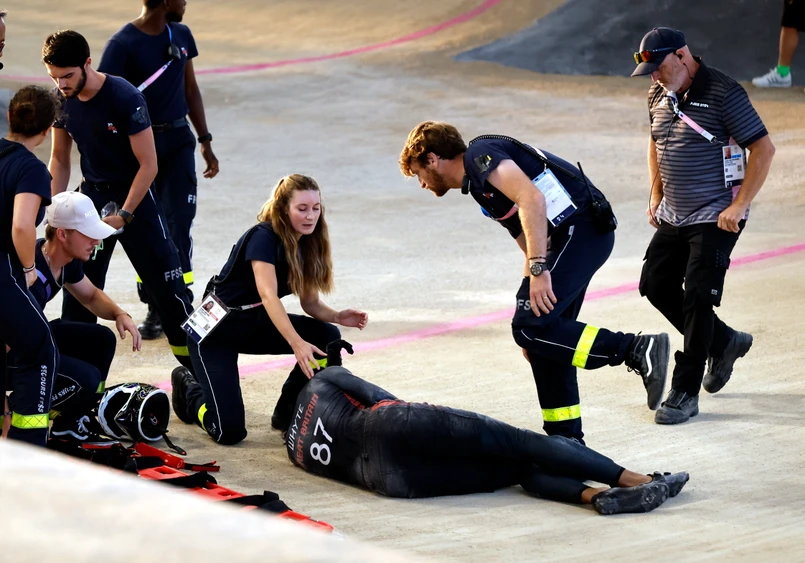 Już na samym początku wyścigu przy lądowaniu po jednym ze skoków zawodnik zawadził o koło Francuza Sylvaina Andre.