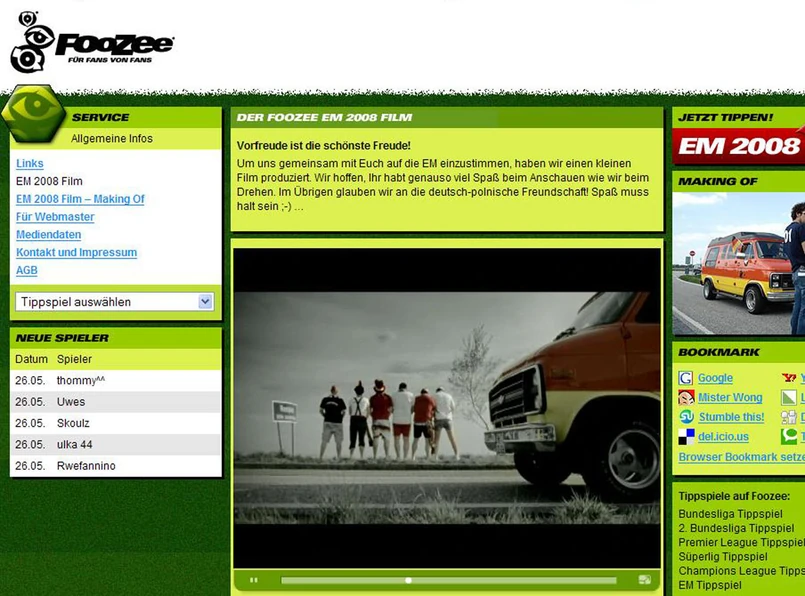 Pomysł na reklamówkę jest prosty. Grupa niemieckich kibiców jedzie furgonetką na mecz swojej reprezentacji. Szaliki na szyjach, czarno-czerwono-złote flagi wymalowane na twarzach, a na ustach kibicowska przyśpiewka "Jetz geht’s los!" (w wolnym tłumaczeniu "Teraz damy czadu!"). Sielankę przerywa nagła potrzeba fizjologiczna. Nasi bohaterowie, z błogimi minami, w rytm niemieckiego hymnu załatwiają się do przydrożnego rowu i już po chwili chcą kontynuować swoją podróż. Tu jednak czeka ich przykra niespodzianka. Znika bowiem auto, którym jechali. Po chwili znikają także wątpliwości, kto za tym stoi. Na ekranie pojawia się napis: "Polska-Niemcy, 8 czerwca 2008", a potem nazwa witryny, gdzie można obstawiać wyniki meczów Euro 2008.