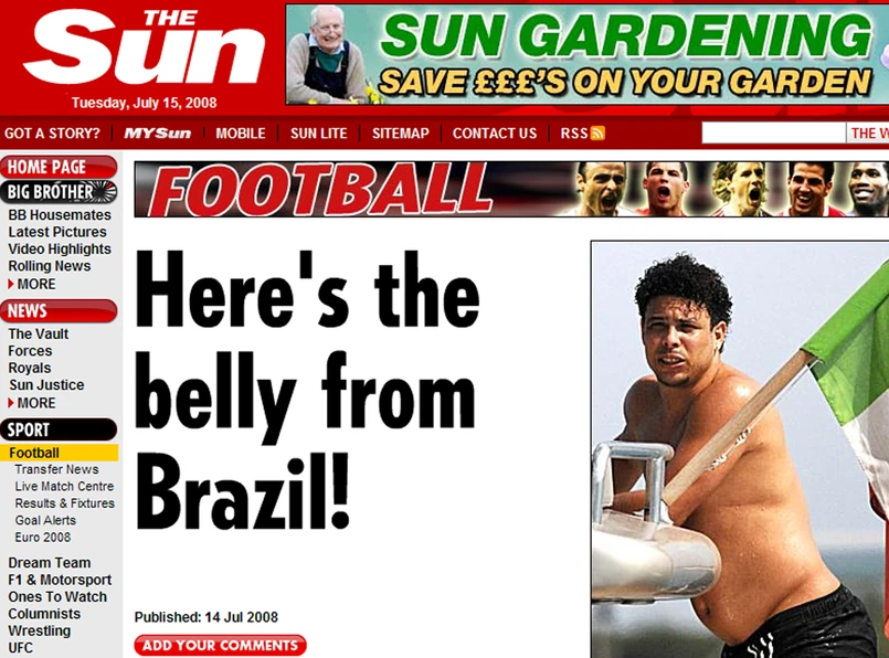 Patrząc na jego sylwetkę ciężko jednak przypuszczać, by Ronaldo jeszcze kiedykolwiek pojawił się na boisku. Tym bardziej, że od piłki nożnej ponoć zdecydowanie bardziej kocha hamburgery.