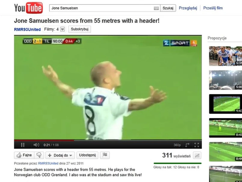 Jego drużyna już deklaruje, że będzie chciała wpisania tego gola do księgi rekordów Guinnessa. Jone Samuelsen trafił do bramki drużyny Tromso z własnej połowy, z odległości aż 57 metrów. Zobacz niesamowitego gola!