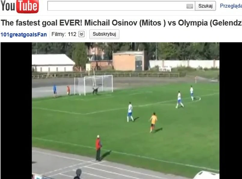 Podczas meczu III ligi rosyjskiej piłkarz zespołu Mitos, Michaił Osinow strzelił gola z połowy boiska już w 2 sekundzie spotkania Tym samym wyrównał rekord świata pod względem szybkości zdobycia bramki.