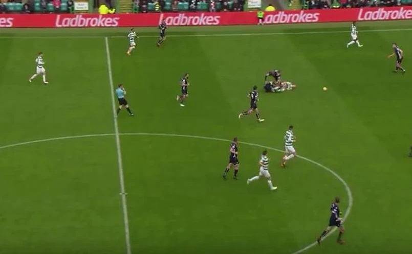 Celem ataku Daviesa nie była piła. Piłkarz ewidentnie chciał zrobić krzywdę rozpędzonemu zawodnikowi drużyny z Glasgow. Gracz Ross County za swoje "zagranie" został ukarany przez sędziego czerwoną kartką.
