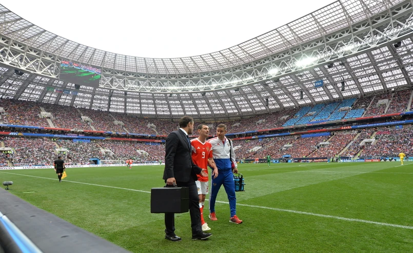 Rosyjska federacja piłkarska poinformowała na Twitterze, że piłkarz doznał urazu ścięgna udowego.