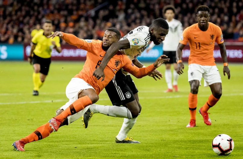 W niedzielę odmłodzona drużyna trenera Joachima Loewa, który niedawno zdecydował, że nie powoła więcej do kadry doświadczonych Thomasa Muellera, Matsa Hummelsa oraz Jerome'a Boatenga, do przerwy była zdecydowanie skuteczniejsza. W 15. minucie na poślizgnięciu się i upadku w polu karnym Matthijsa de Ligta skorzystał Leroy Sane, który nie miał kłopotów z pokonaniem Jaspera Cillessena. Z kolei w 34. minucie po indywidualnej akcji pięknym strzałem na 2:0 podwyższył Serge Gnabry.