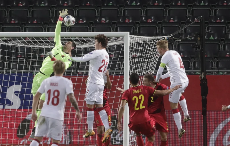 W środę udział w Final Four zapewniła sobie też Belgia, która w bezpośrednim starciu pokonała najgroźniejszego rywala w grupie - Danię 4:2. Dwa gole dla gospodarzy zdobył Romelu Lukaku, ale mecz długo zapamięta belgijski bramkarz Thibaut Courtois, który nie opanował piłki podanej mu przez Nacera Chadliego i wpisał się do protokołu jako autor gola samobójczego.