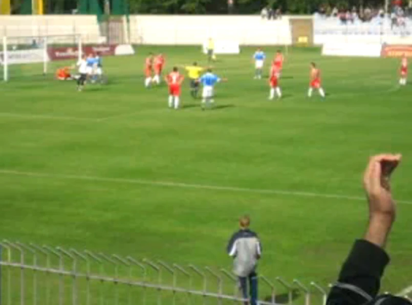 Ten co prawda trafił, jednak bramka... nie została uznana, bo dwóch piłkarzy z Gorzowa wbiegło w pole karne zbyt szybko.