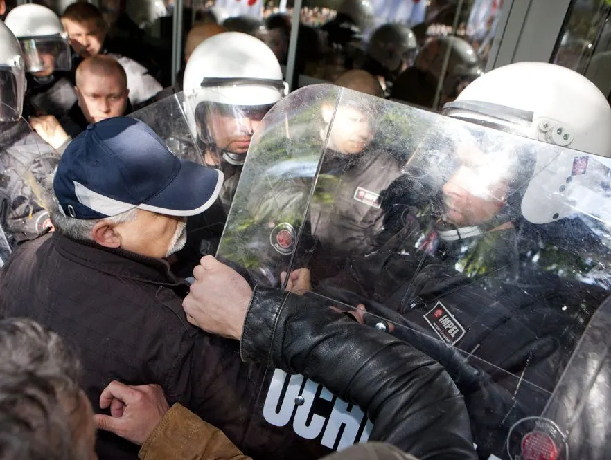 Przez kilka minut pierwszej części spotkania kibice gospodarzy opuścili jeden z sektorów, pozostawiając na nim transparent o treści: "Trybuna zamknięta na wniosek Donalda Tuska", co zapewne było "głosem w dyskusji" na temat zamknięcia przez wojewodów stadionów Lecha i Legii.