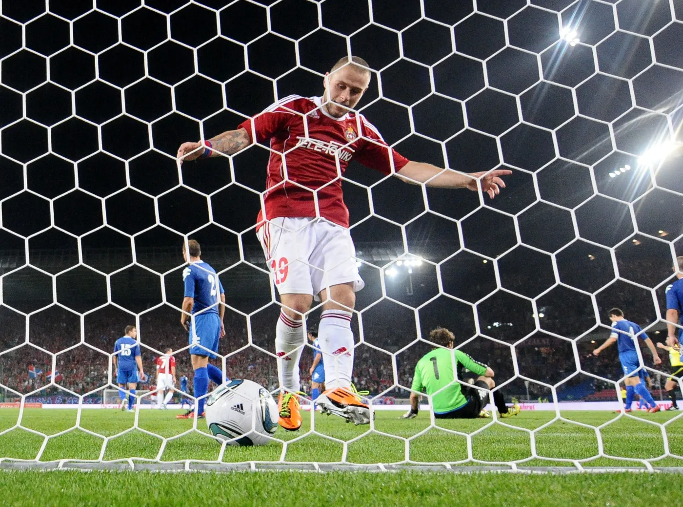 Jagiellonia Białystok: Jakub Słowik - Grzegorz Bartczak, Andrius Skerla, Thiago Cionek, Alexis Norambuena - Tomasz Kupisz, Hermes, Rafał Grzyb (46. Marcin Burkhardt, 63. Łukasz Tymiński), Dawid Plizga - Jan Pawłowski (46. Ermin Seratlić), Tomasz Frankowski