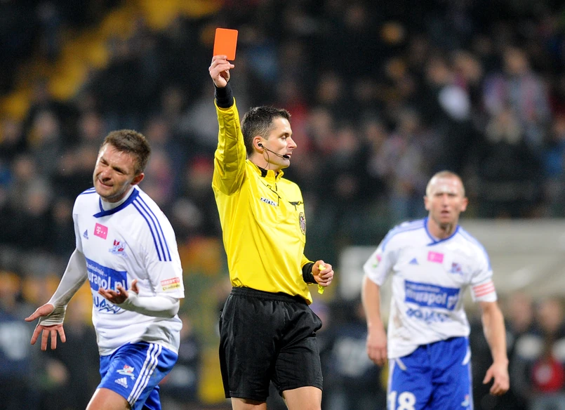 Sędzia Daniel Stefański z Bydgoszczy podjął kontrowersyjną decyzję w doliczonym czasie pierwszej części meczu. W dobrej sytuacji znalazł się wówczas węgierski pomocnik Lecha Gergo Lovrencsics. Tuż przed linią pola karnego Piertasiak wybił prowadzoną przez niego piłkę. Węgier upadł. Arbiter uznał, że defensor faulował wychodzącego na czystą pozycję zawodnika i ukarał go czerwoną kartką. Grające w osłabieniu Podbeskidzie przegrało mecz 2:3.
