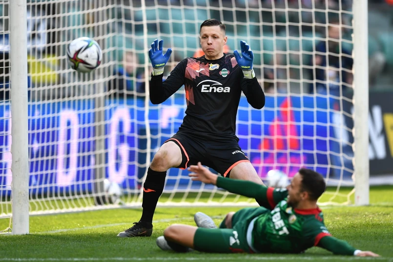 Ciekawie zrobiło się dopiero tuż przed przerwą, a postarał się o to środkowy obrońca Radomiaka Raphael Rossi. Po dośrodkowaniu z lewej strony Brazylijczyk ostro zaatakował łokciem w powietrzu Erika Exposito i arbiter wskazał na jedenasty metr. Do piłki podszedł Petr Schwarz uderzył płasko, ale zamiast do siatki trafił w słupek.