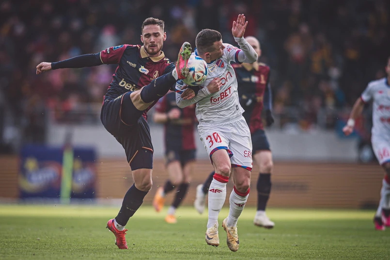 Chwilę później goście mogli prowadzić 2:0, ale Łotysz Vladislavs Gutkovskis nie sięgnął piłki na piątym metrze mając przed sobą pustą bramkę. W 54. min jednak przyjezdni podwyższyli prowadzenie - ponownie po rzucie rożnym wybita piłka trafiła na 16. metr do piłkarza Rakowa, ale tym razem był to Jean Carlos Silva, który pięknym uderzeniem z woleja nie dał szans Dantemu Stipicy. Brazylijczyk, który w przerwie meczu odebrał nagrodę za 58 występów w barwach Pogoni, nie celebrował zdobycia gola.