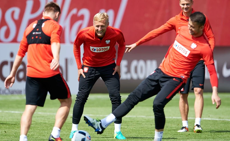 Inauguracyjny trening biało-czerwonych nie był zbyt forsowny. Po krótkiej rozgrzewce zawodnicy zagrali w popularnego "dziadka", a następnie na czterech małych boiskach rywalizowali w siatkonogę. Na zakończenie Arkadiusz Milik oraz Pawłowie Wszołek i Dawidowicz oddali kilkadziesiąt strzałów, które starali się bronić golkiperzy pierwszoligowej Arki - Konrad Jałocha i Jakub Miszczuk. W tym czasie pozostali reprezentacji rozciągali się.