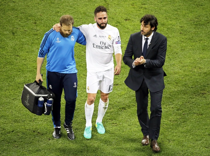 Carvajal doznał kontuzji mięśnia prawej nogi w finale Champions League, w którym jego Real Madryt pokonał lokalnego rywala Atletico w rzutach karnych. Hiszpan opuścił boisko na początku drugiej połowy.