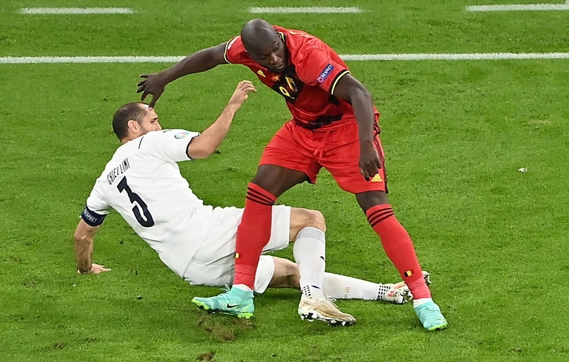 Wydawało się, że piłkarze Italii zejdą do szatni na przerwę w znakomitych humorach, ale w doliczonym czasie pierwszej połowy sędzia podyktował rzut karny (faulowany był Jeremy Doku, sytuację sprawdzał jeszcze VAR), a pewnym strzałem kontaktową bramkę zdobył Romelu Lukaku.