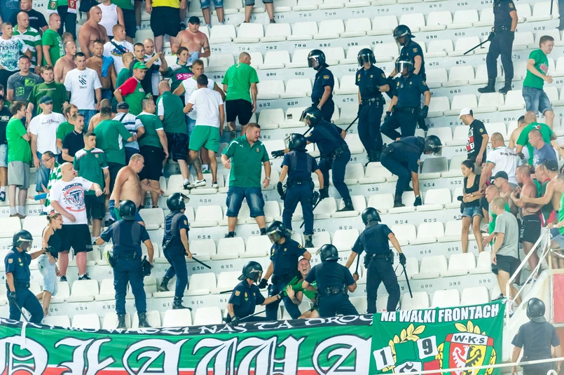 Jak zapewnił PR naoczny świadek zajścia, po rozpoczęciu II połowy meczu Polacy zaczęli rzucać butelkami. Najpierw miało ich uspokajać kilku policjantów, kiedy jednak jeden z nich dostał butelką w głowę, wezwano posiłki i rozpczęła się bójka. Rozmówca PR poinformował, że policja biła tych, którzy zawinili ale też tych, którzy byli blisko. 5 Polaków spędziło noc na komisariacie i dzisiaj złożą zeznania. Rannych zostało 2 policjantów i 3 kibiców Śląska Wrocław, jednak nie wiadomo, czy chodzi o zatrzymanych czy też inne osoby.