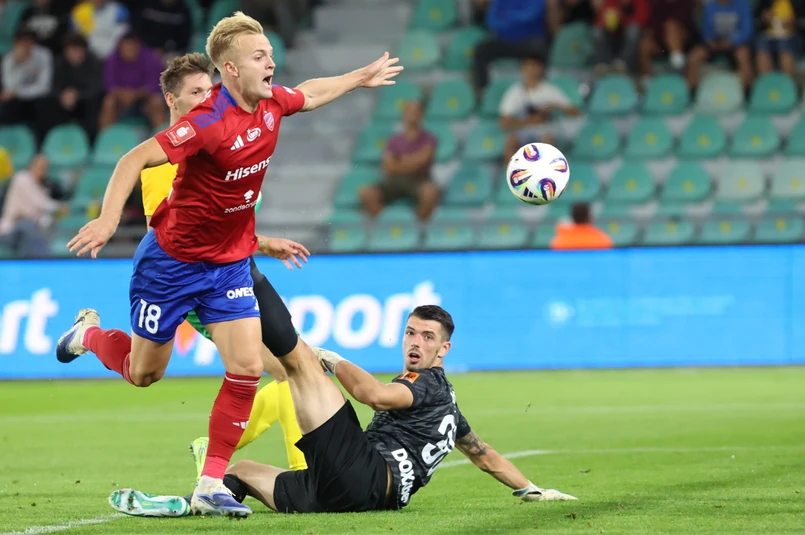 Piłkarze z Żyliny prowadzili od 13. minuty po efektownym golu Davida Durisa z woleja z ok. 15 metrów. Stwarzali kolejne groźne sytuacje, powinni podwyższyć wynik, ale znakomicie w bramce Rakowa spisywał się Kacper Trelowski.