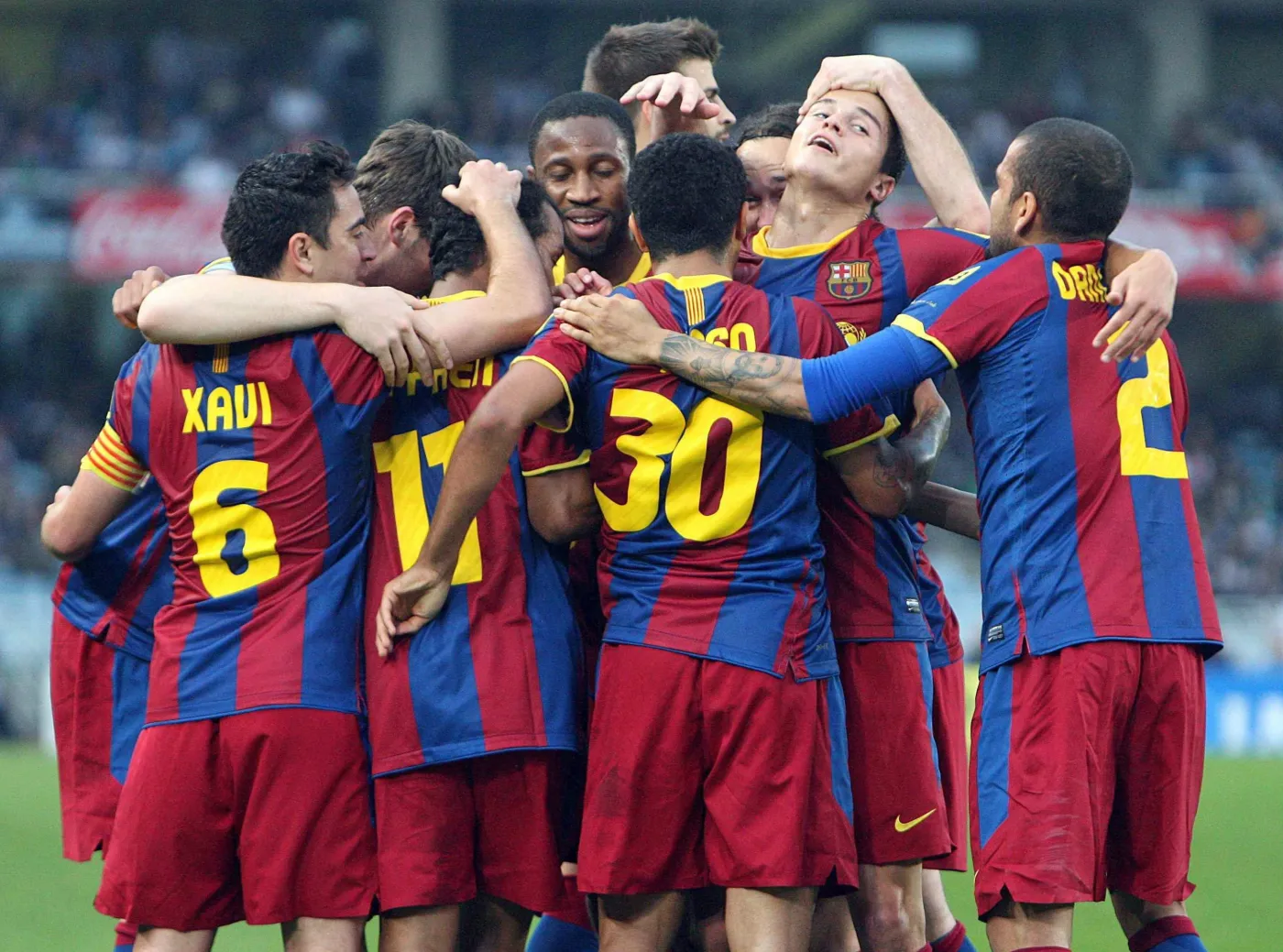 Mascherano, Carles Puyol (90-Eric Abidal) - Sergio Busquets, Xavi,