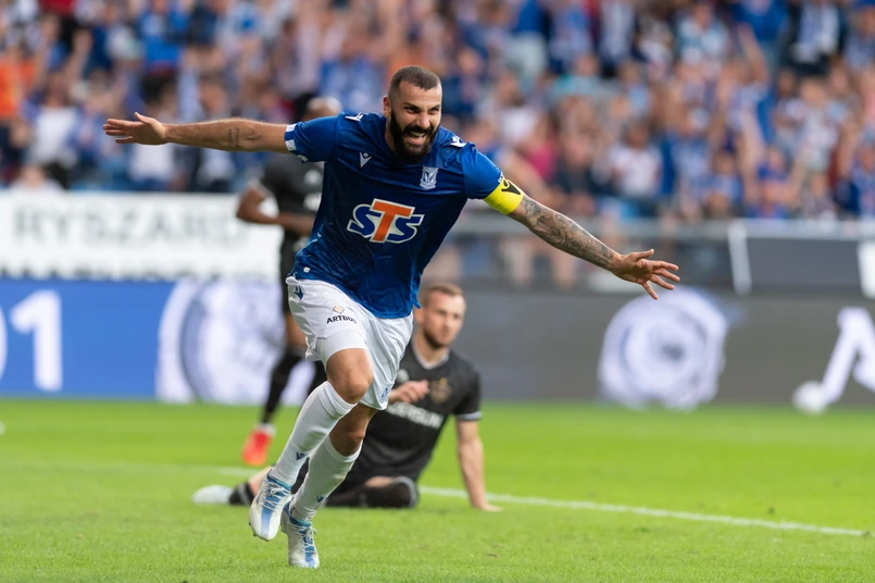 Momentami wydawało się, że gol dla mistrza Azerbejdżanu wisi w powietrzu, ale gospodarze przetrwali napór przeciwnika. Krótko przed przerwą po ładnej i przemyślanej akcji lechici objęli prowadzenie. Do dośrodkowania Joela Pereiry nogę dołożył Ishak. Statystyki były za Karabachem, ale to mistrzowie Polski schodzili do szatni przy korzystnym wyniku.