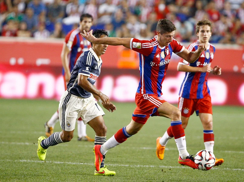 Tuz przed końcem pierwszej części gry Jair Pereira ostrym wślizgiem od tyłu zaatakował Roberta Lewandowskiego. Reprezentant Polski nie utrzymał nerwów na wodzy. "Lewy" szybko doskoczył do rywala i go odepchnął. Między napastnikiem Bayernu, a graczem Chivas doszło do przepychanek. Piłkarzy musieli rozdzielić koledzy.