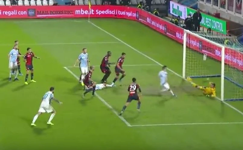 W pierwszej połowie Reca nie potrafił z metra skierować piłki do siatki. Obrońca SPAL trafił w bramkarza Genoi.