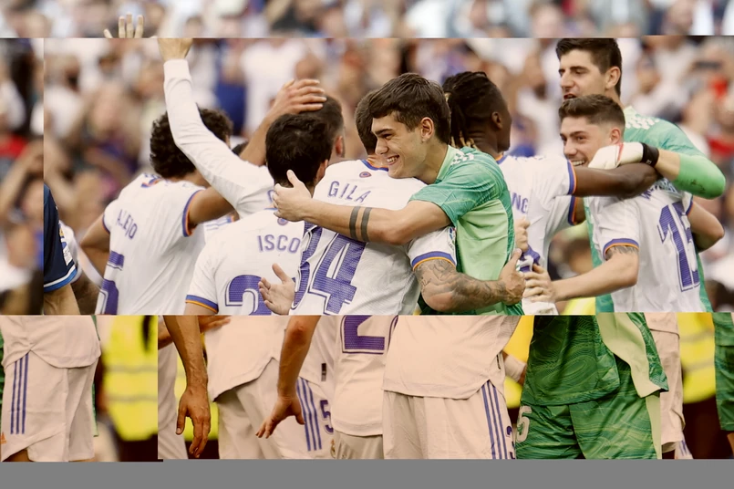 Realowi do zapewnienia tytułu wystarczał w sobotę remis. W pierwszej połowie dwie bramki zdobył Rodrygo - w 33. i 43. minucie. Po przerwie na listę strzelców wpisali się Marco Asensio w 55. i Karim Benzema w 81. To właśnie francuski napastnik wzniósł po meczu trofeum.