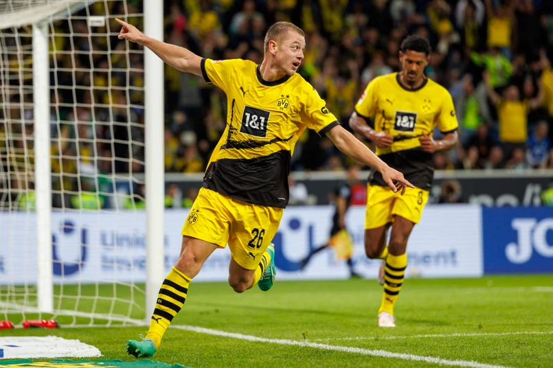 W piątek na stadionie w Sinsheim trzy bramki padły przed przerwą. Dla gospodarzy zdobył ją z rzutu karnego Chorwat Andrej Kramaric, a dla Borussii trafili Niclas Fullkrug i w doliczonym czasie pierwszej połowy Marco Reus. Goście utrzymali korzystny wynik, mimo że od 71. minuty grali w osłabieniu, gdy drugą żółtą i w konsekwencji czerwoną kartkę otrzymał Algierczyk Ramy Bensebaini. Co więcej, w doliczonym czasie drugiej połowy przypieczętowali zwycięstwo golem Norwega Juliana Ryersona.