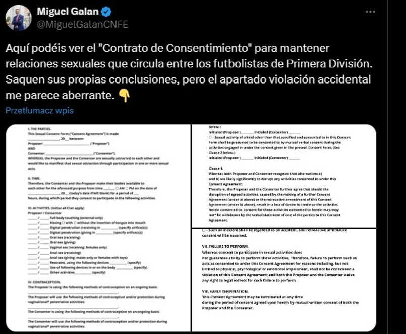 Jej treść w mediach społecznościowych ujawnił Miguel Galan, a więc Prezes Narodowego Centrum Szkolenia Trenerów Piłki Nożnej w Hiszpanii (CENAFE).