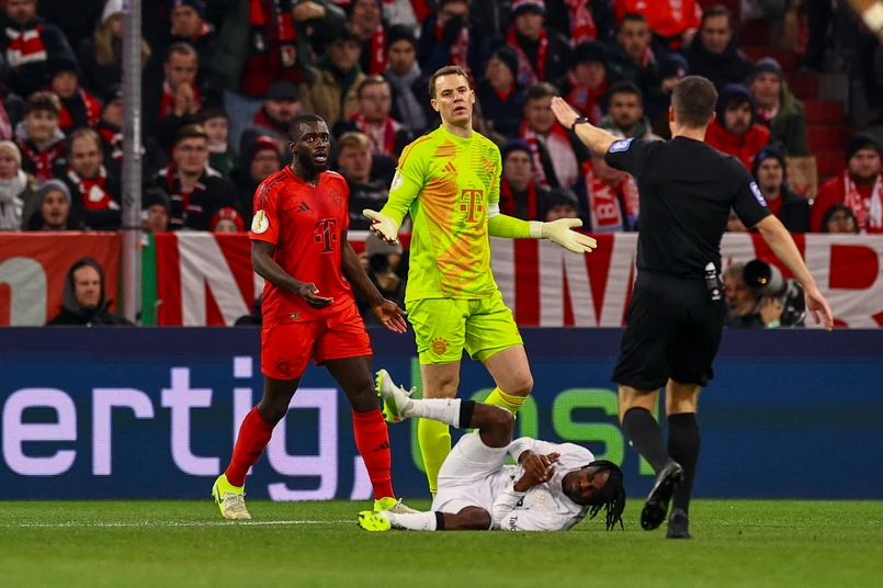 Neuer został wyrzucony z boiska po niebezpiecznej interwencji, gdy staranował Jeremiego Frimponga. Trener Vincent Kompany dokonał wymuszonej zmiany. Rezerwowy bramkarz Daniel Peretz zastąpił skrzydłowego Leroy'a Sane.