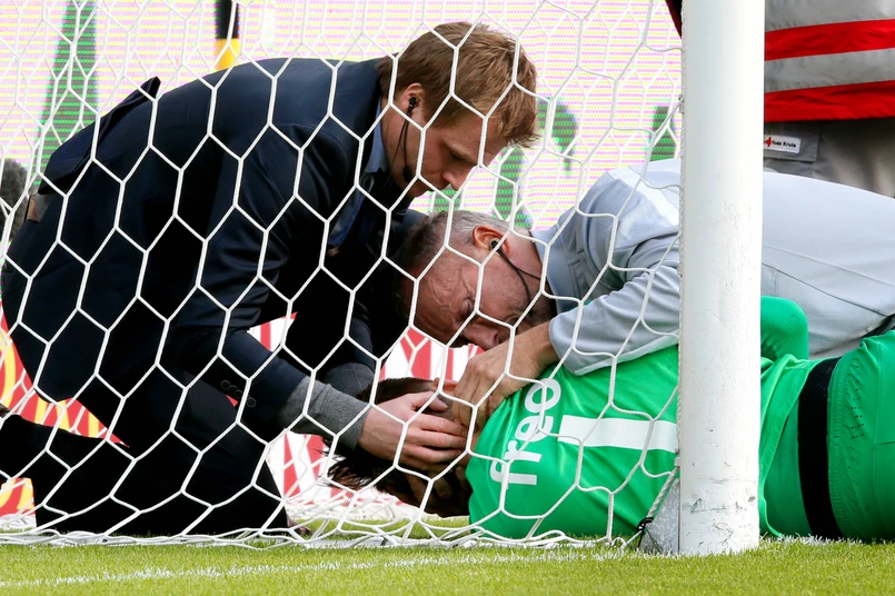1 Szczegółowe badania wykazały, że polski bramkarz doznał niewielkiego wstrząsu mózgu i ma stłuczone biodro