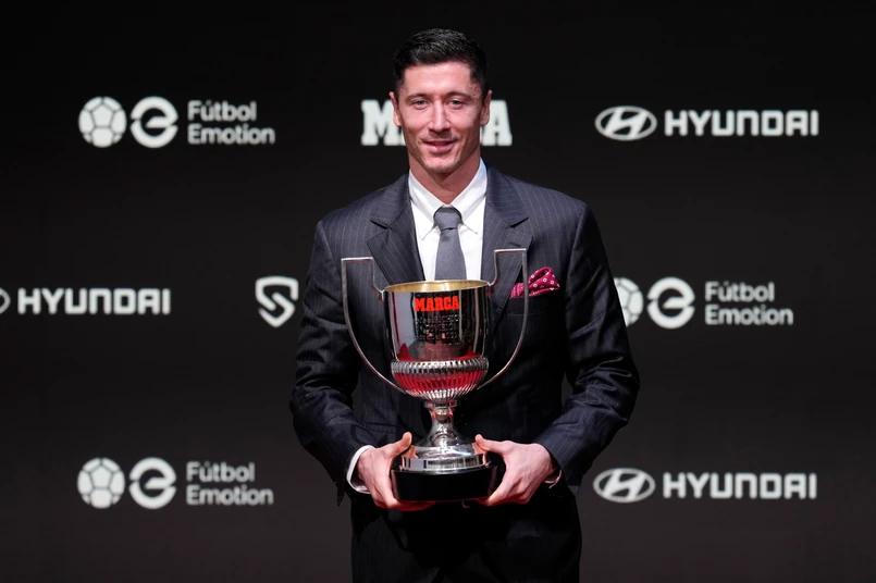 1/5 W ręce Roberta Lewandowskiego "trafiło" Trofeo Pichichi. To statuetka przyznawana najlepszemu strzelcowi w rozgrywkach ligi hiszpańskiej.