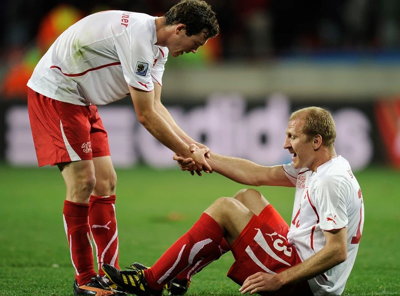 Szwajcaria: 1-Diego Benaglio - 2-Stephan Lichtsteiner, 13-Stephane Grichting, 5-Steve Von Bergen, 17-Reto Ziegler - 7-Tranquillo Barnetta, 8-Gokhan Inler, 6-Benjamin Huggel, 16-Gelson Fernandes - 19-Eren Derdiyok, 10-Blaise Nkufo