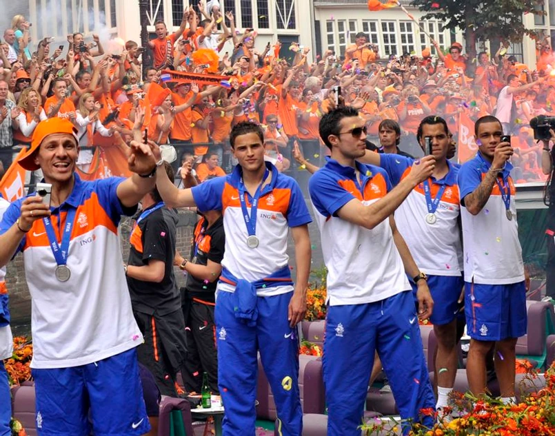 Później piłkarze na pokładzie wojskowych śmigłowców wrócili do Amsterdamu, gdzie na ulicach miasta powitali ich kibice. Reprezentacja odświętnie udekorowanym statkiem spacerowym przepłynęła Grand Canal, na brzegach którego wiwatowały setki tysięcy fanów ubranych w pomarańczowe barwy. Domy na trasie przejazdu i w całym Amsterdamie zostały udekorowane flagami narodowymi.
