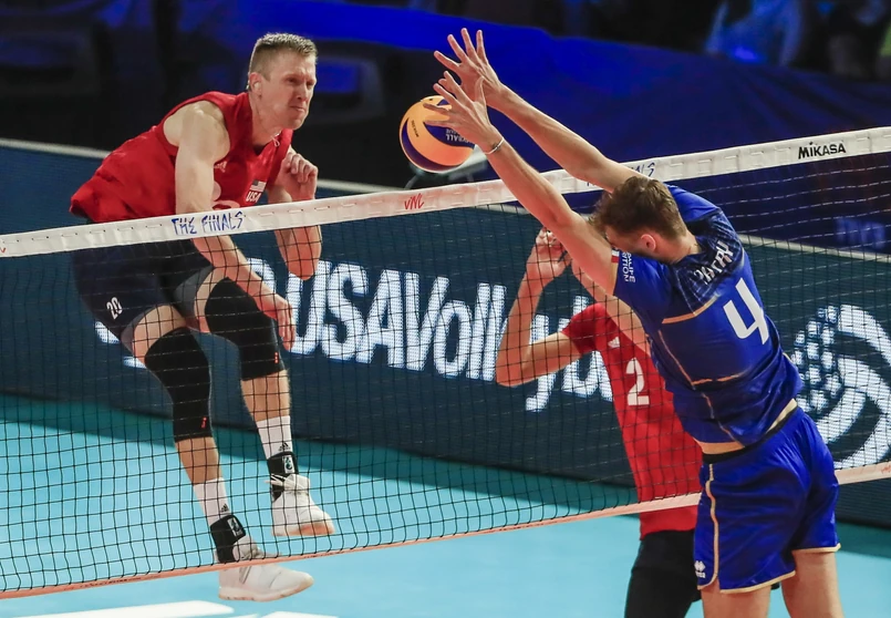 W ekipie Francuzów, finalistów ubiegłorocznej edycji rozgrywek, brakuje m.in. największej gwiazdy - charyzmatycznego przyjmującego Earvina N'Gapetha. Do USA nie poleciał również libero Jenia Grebennikov uznawany za jednego z najlepszych na świecie zawodników grających na tej pozycji. We francuskiej drużynie na finałowy turniej LN znalazło się jednak kilku podstawowych graczy, którzy znani są w występów w Pluslidze - rozgrywający Benjamin Toniutti (ZAKSA Kędzierzyn-Koźle) i Antoine Brizard (ONICO Warszawa) oraz przyjmujący Julien Lyneel (Jastrzębski Węgiel) i Kevin Tillie (dawniej ZAKSA i Jastrzębski, a od przyszłego sezonu ONICO). Najwięcej punktów dla reprezentacji Stanów Zjednoczonych - 17 - zdobył w tym pojedynku grający na środku Holt. Taki sam dorobek po drugiej stronie siatki miał Jean Patry.
